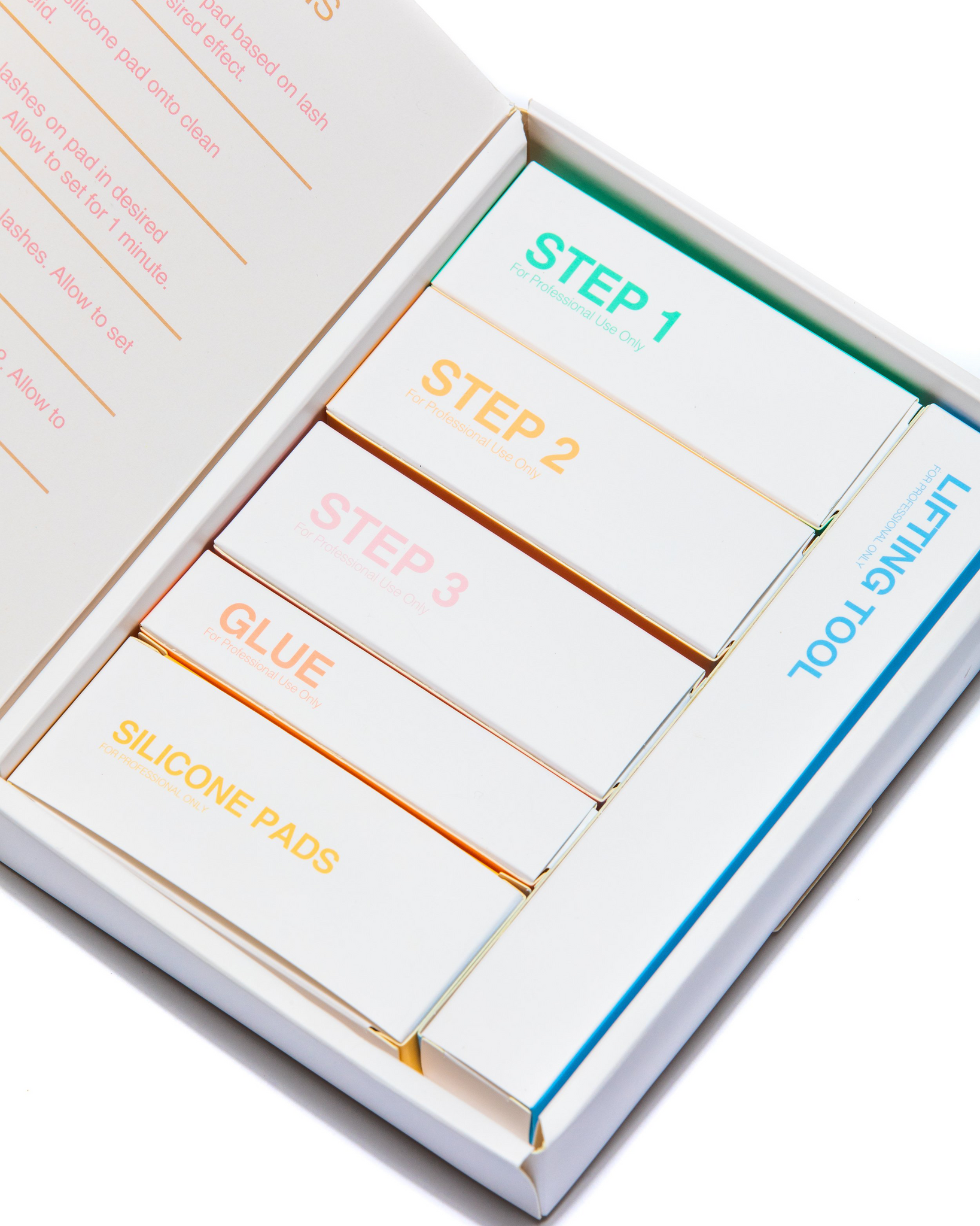 Customize, lift and curl your lashes using 1 of the 3 sizes of silicone pads. Use the special lash lift glue and lifting tool to adhere your lashes to the silicone pads in your desired position. Steps 1, 2 and 3 will perm, set and condition your lashes with results lasting 4-6 weeks. Good for 10 uses.